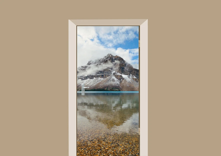 4. Trek nu voorzichtig de rest van het schutvel van de deursticker af en veeg de sticker glad over de deur.