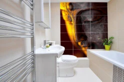 Foto Tegelsticker 15×15 ‘Boeddha Hoofd Met Boom’ 90×30 Cm Hxb
