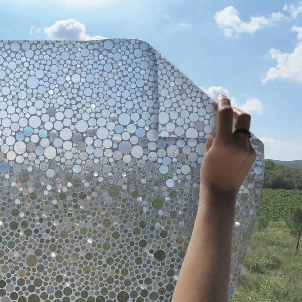 Stevig statisch raamfolie met ronde vormen. Het statische glasfolie hecht niet door middel van een plaklaag maar hecht door middel van statische electriciteit. Hierdoor is het folie extra makkelijk aan te brengen. De breedte is 46cm, de lengte snijden wij per staffel van 50cm voor je op maat.