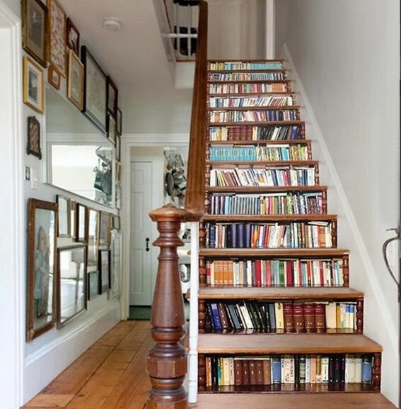 Verander die saaie trap in jouw huis of op jouw bedrijf eens in iets bijzonders! Met deze traptrede stickers maak je van jouw trap een echte eye-catcher. De trapstickers zijn verkrijgbaar als boekenkast, als waterval of met barokke en met Spaanse tegeltjes. De afbeelding heeft van dichtbij een ietwat wazige look, dit wordt minder wanneer je van een paar meter afstand kijkt.